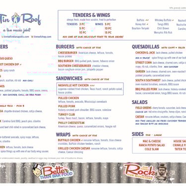 Tin Roof is your go-to hangout for live music, great vibes, and unforgettable nights in the heart of the city. Known for its lively stage, tasty food, and laid-back atmosphere, Tin Roof welcomes everyone—from music lovers to musicians, locals to newcomers. Whether you're here for the tunes, the tacos, or just a cold drink with friends, this is the spot “where everybody is somebody.” Come often enough, and you just might become a Regular.